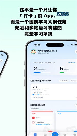 今知习录APP通过学习项目与结构树管理、多轨道进度区分记录与刷题复习无缝切换三大核心引擎,将长期学习从“碎片化”升维为“结构化沉淀、可追溯复盘”的科学体系。平台以完整打卡历史让努力被看见,以数据可视化报告优化学习策略,更以四象限备忘录管理学习事项。当用户通过时间线回溯一道题的多次练习,当学习报告指出需要加强的章节——今知习录守护的不仅是470万条学习记录,更是每一个学习者努力有痕、进步可见的成长轨迹。