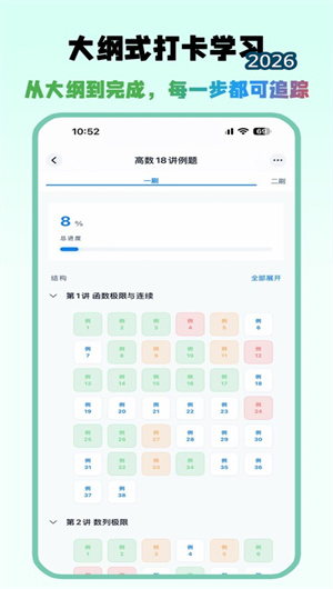 今知习录独创轨道进度系统,支持预习、一刷、二刷、多轮复习等不同阶段分别记录。同一道题可在不同轨道中独立标记进度状态,互不干扰。每次打卡支持完成、复习、有问题三种状态,可补充备注、错因总结、手写草稿或截图,完整保留学习痕迹。该功能让91%的用户表示“同一道题刷几遍,每次的状态都清清楚楚”。