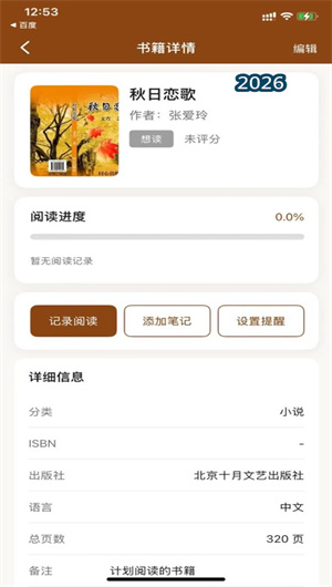 2. 阅读管理助手的阅读记录功能是其精细化管理的核心体现。每次打开一本书阅读,用户都可以记录本次的起始页码和结束页码,系统自动计算本次阅读的页数。阅读计时功能支持手动输入时长或开启计时器实时记录,精准掌握每次阅读的时间投入。阅读日期自动记录,形成完整的阅读时间轴。系统会为每一本书生成详细的阅读历史,用户可以随时回溯某本书的阅读历程,看到自己哪天读了、读了多久、读了多少页。阅读笔记功能支持为每次记录添加文字笔记,记录当下的思考、感悟或疑问,这些笔记按时间顺序与阅读记录关联,形成与书籍对话的思想轨迹。阅读相册功能允许用户在记录时拍摄书页、插图或封面照片,将视觉记忆与文字记录相结合,构建更加丰富的多媒体阅读档案。进度百分比根据总页数和已读页数自动计算,让用户对剩余阅读量一目了然。这些精细化的记录功能,将阅读这一看似简单的行为转化为可量化、可回溯的数据资产。