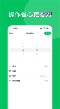 1、界面设计采用极简风格,去除所有冗余元素,让你专注闹钟本身的核心功能体验。