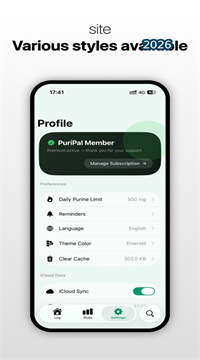 3、自定义每日嘌呤上限随医嘱调整,深色模式加多主题切换,让控酸之路也能好看又顺手。