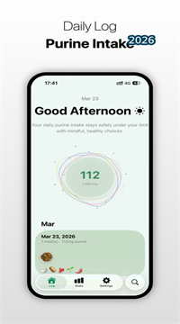 1、今日进度环实时显示已摄入嘌呤占每日上限比例,一眼就知道还能不能再夹一块肉。