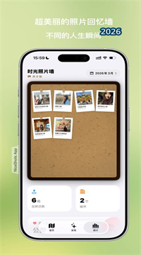 2、探访过的城市、小店、山野一键生成照片墙,时间轴横向滑动,像翻实体相册。