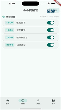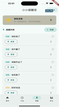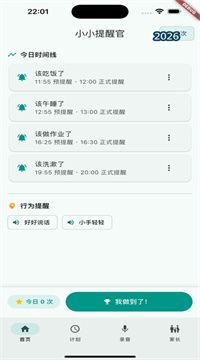 1、起床到睡前的10+节点都能录专属语音,到点自动播放,孩子听见爸妈声音更愿意行动。