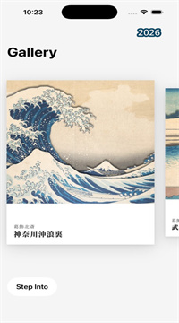 1、手动分层还原北斋原作,倾斜手机视差跟随,光影在木纹背景上浮动,点击卡片轻微摇晃,细节互动让浮世绘真正活起来。