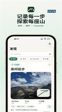 1、徒步骑行城市漫步三种模式精准记录轨迹海拔距离时长,长线活动能耗优化,结束自动生成完整回顾供随时查看。