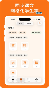 1、教材同步生字网格化学习与一课一练功能:软件按年级、上册下册以及具体课文编号对小学语文教材中的全部生字进行结构化整理,孩子可以像翻阅目录一样逐课浏览需要掌握的生字列表,每一课对应的生字均支持集中学习与快速测验两种模式,确保课堂所学与课外练习保持严格一致,避免超纲或脱节。