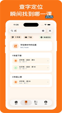 2、精准查字定位功能快速定位生字出处:当孩子在课外阅读或作业中遇到一个不认识的汉字时,只需在该功能模块中输入该字或其拼音,软件会在毫秒级内返回这个字具体出现在几年级上学期或下学期以及哪一篇课文当中,并可一键跳转至该字的详细学习页面,将零散遇到的陌生字与课堂知识体系建立明确关联,帮助孩子理解这个字本应在什么学习阶段掌握。
