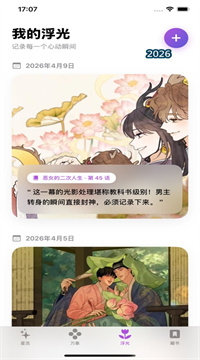 2. 私人漫画手账本。导入漫画截图,搭配你的灵感漫评。自动生成高质感高光日记卡片。心动瞬间永不褪色。