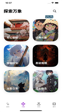2. 探索万象功能。漫画分类变为精美图文气泡。自适应展示框,看各领域佳作。告别漫荒无聊。