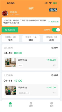 3、广泛场景覆盖:支持多种本地生活服务。家政保洁、安装维修、美业到家等都能轻松接单,业务广。