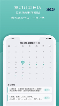 3、告别死记硬背。艾宾浩斯遗忘曲线作支撑。智能生成你的专属复习计划。每天复习啥,清清楚楚。打卡记录你的进度。