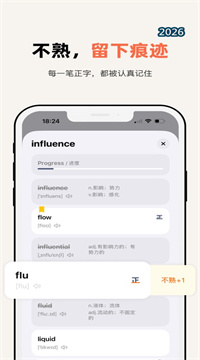 3、流畅的标记交互,背词体验极佳。滑动手势标记单词掌握情况,让整个学习过程行云流水。背单词不只快,而且记得特别牢固,真正让记忆长久留存。